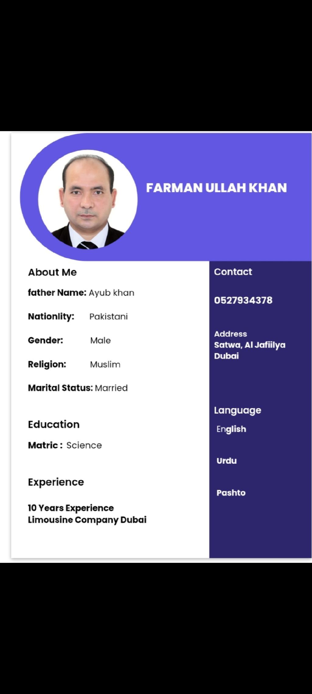 Hi sir ma'am my name is farman I looking job for driving think