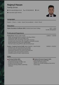 Looking for Job - Family Driver Experienced Family Driver with valid UAE license (Automatic) Safe driving, school runs, errands, child - friendly. Languages English, Hindi (Arabic basic) Expected Salary AED3000 Accommodation required Available immediately