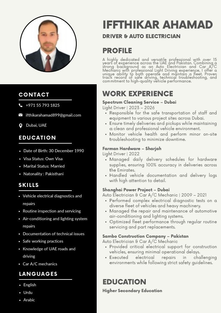 Iftikhar Ahmad from pakistan currently in Dubai looking for driver job. license no 03. having 5to6 year experience. if there is vacancy kindly contact me. WhatsApp and calling