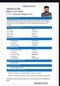 It's me shams ul haq from pakistan light vehicle driver I have very good experience as a luxury car driver more then 3 years old license