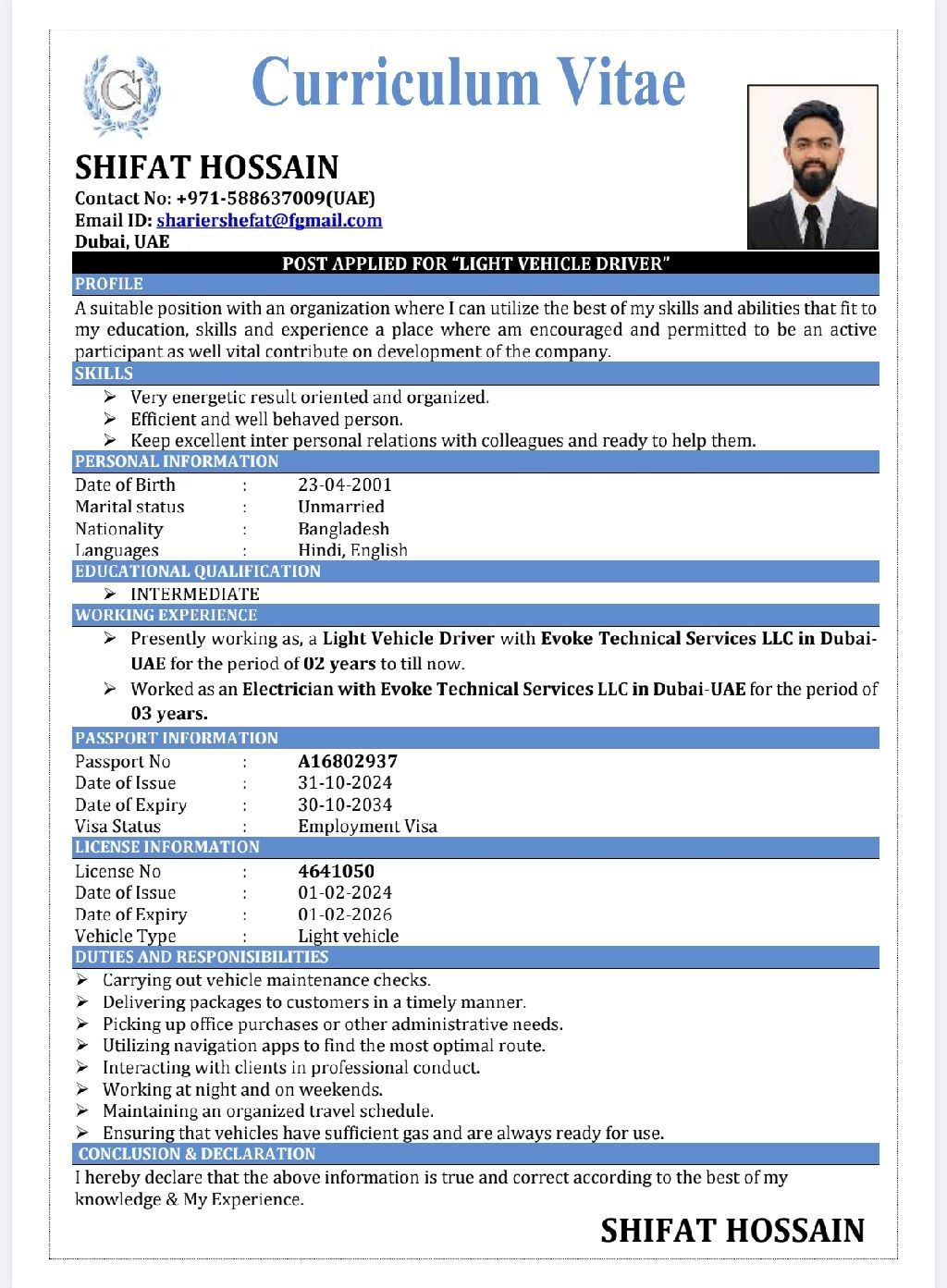 My name is sifat. I am looking for the driver job in Abu Dhabi & Dubai. I have more than 4 years experience work in Dubai. I work is company driver and personal driver. I speak English and Hindi Urdu. if some one need the driver so call or WhatsApp for more details please