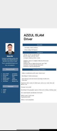 Reliable and professional Delivery Specialist & Driver with extensive experience navigating UAE roads. Proven track record of punctuality and safety across restaurant hospitality, e commerce (Amazon) and luxury vehicle transport. Skilled in customer service, cash handling, and fleet management. Possess a UAE Light Vehicle License obtained on the first attempt