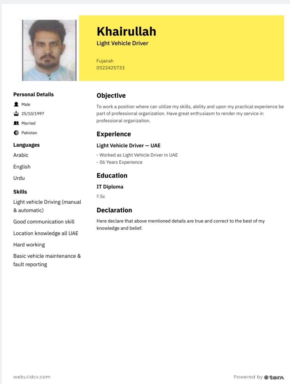 Looking job for lite vehicle driver experience 8 years