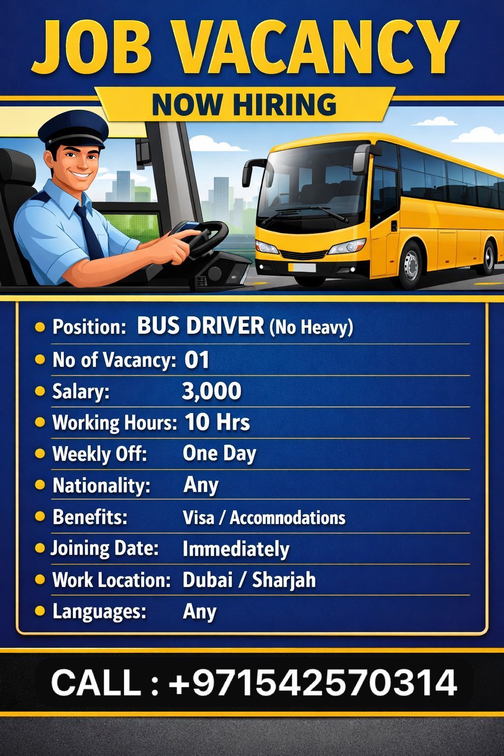 Driving salary 3000 visa Accommodation company provide location in Al nadha Dubai
