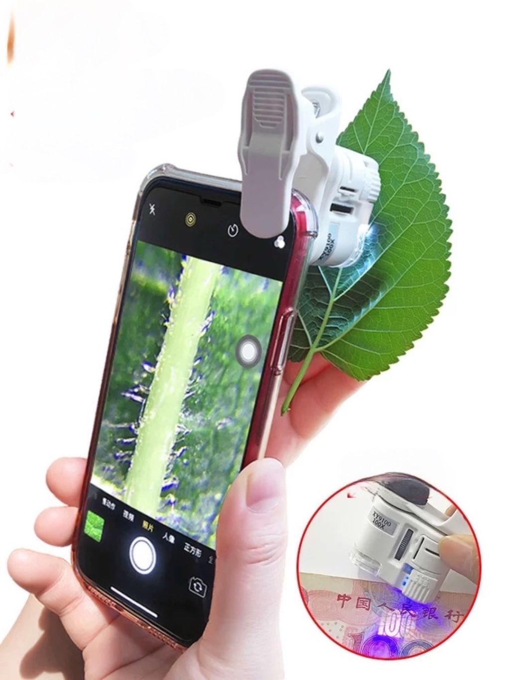 جهاز مميز لفحص العملات والتفاصيل الدقيقة والتقاط الصور المجهرية والفيديوهات من الموبايل يكبر 100 مرة متوفر بسعر 25 درهم