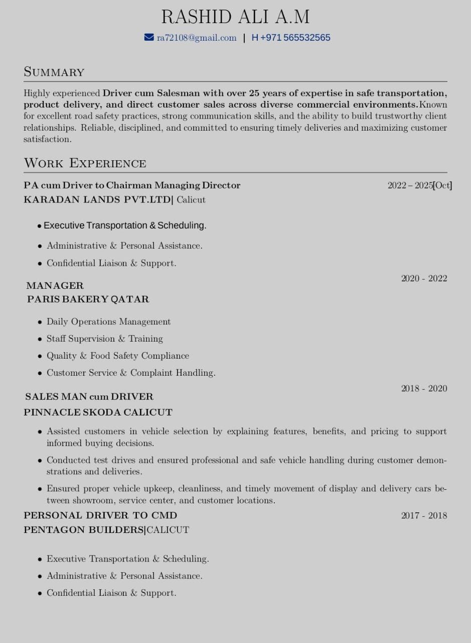ابحث عن وظائف شاغرة لمساعد شخصي. مساعد اداري. مساعد مستودع. أمين مخزن. إشرافية. لدي أكثر من 20 + نعم خبرة في اللغات المعروفة باسم. انجليزي. الهندية. عربي. المالايالامية. التأميل. يمكنني قيادة المركبات أيضا ولكن بدون رخصة قيادة