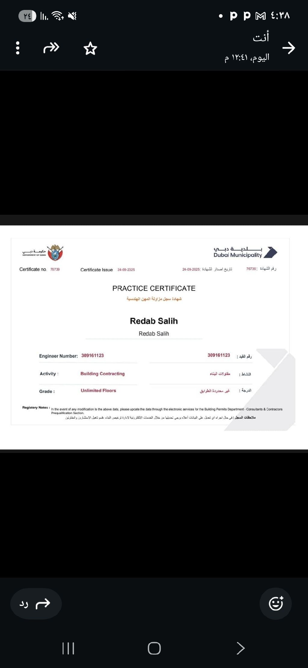 Civil Engineer, holding Dubai Municipality approval (Unlimited Contracting) Ready for Immediate Classification, Contact Call