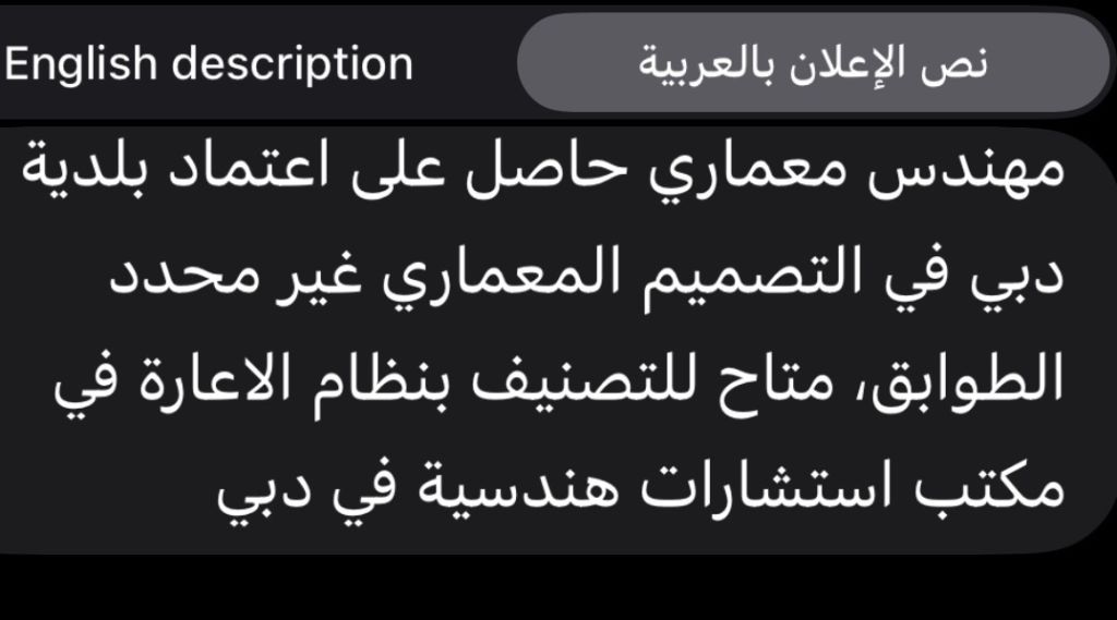 مهندس معماري حاصل على اعتماد بلدية دبي في التصميم المعماري غير محدد الطوابق، متاح للتصنيف بنظام الاعارة في مكتب استشارات هندسية في دبي