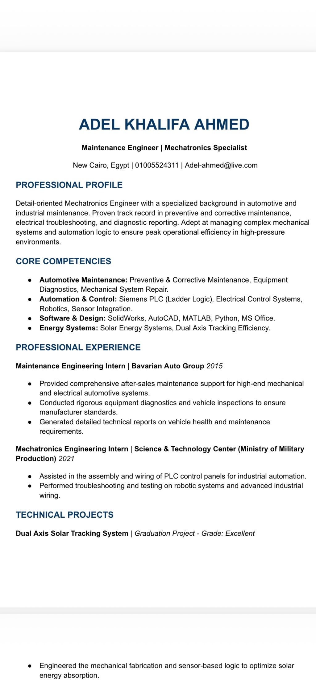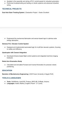 Fresh graduate Mecha Tronics engineer looking forward work