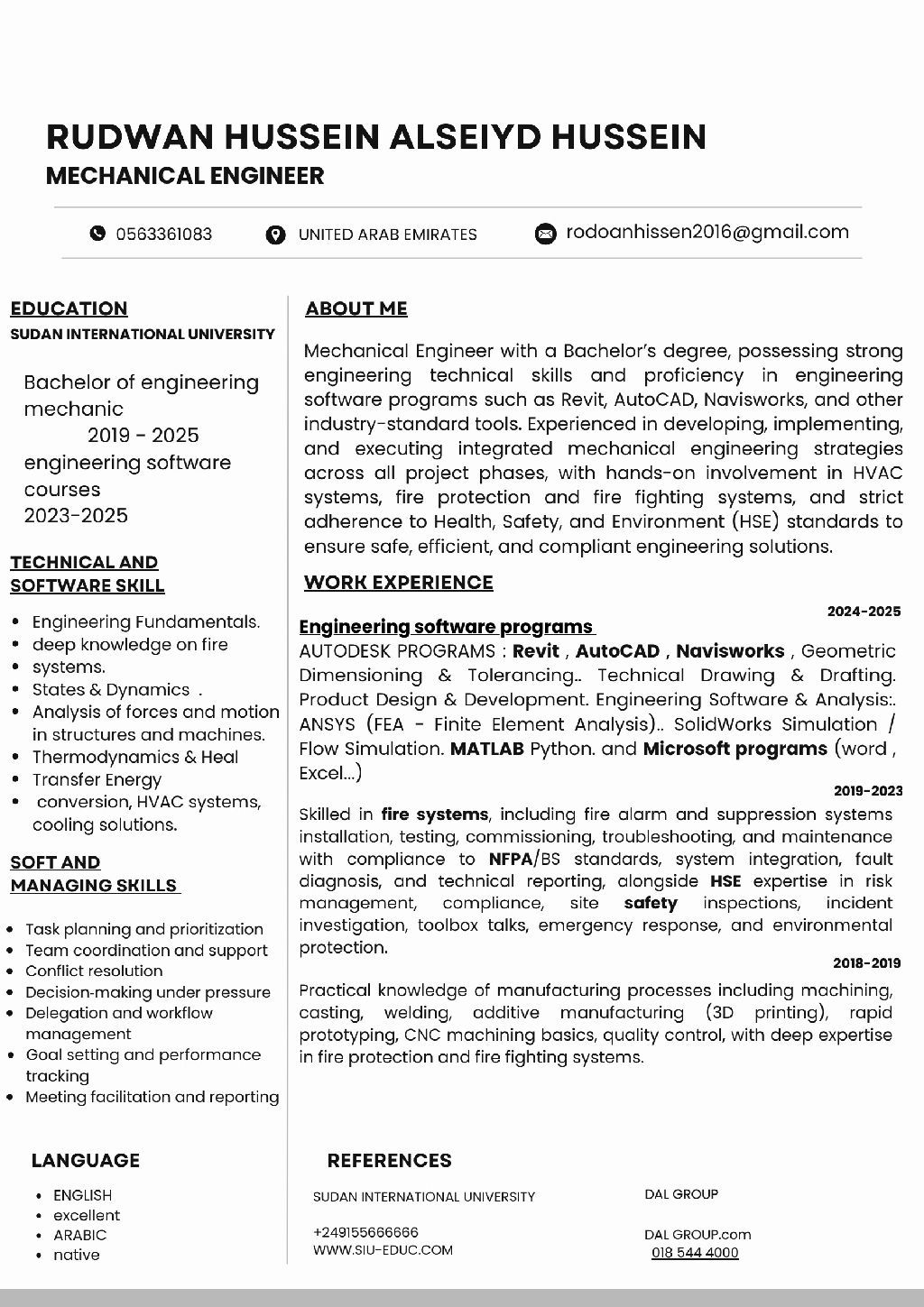 Mechanical engineer looking for a suitable position experience in fire systems and drawing software (Revit, navisworks) BOQ) CHECK MY CV FOR All DETAILS I can work as a trainer also