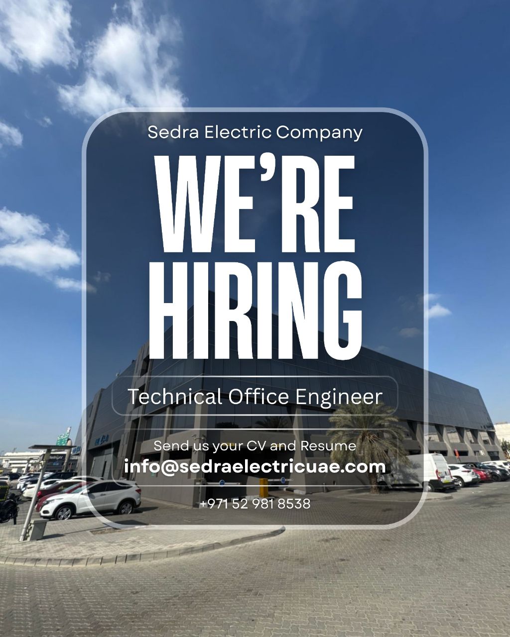 We Are Hiring - Technical Office Engineer (MEP) Sedra Electric is expanding, and we’ re looking for a talented and experienced Technical Office Engineer to join our team inAbu Hail Dubai. Requirements 1 - 2 years experience in Dubai Strong experience in MEP works (Electrical, Plumbing, HVAC) Proficiency in Technical Office tasks including shop drawings, as - built drawings, QS, and documentation