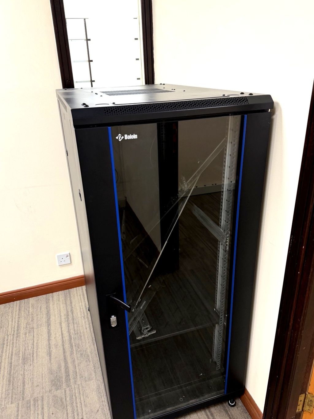راك سيرفر 32U بحالة ممتازة للبيع الوصف راك سيرفر (Server Rack Cabinet) بحالة ممتازة جدا، استخدام خفيف ونظيف. المواصفات الارتفاع حوالي 32U - الأبعاد 100 سم عمق × 60 سم عرض × 140 سم ارتفاع - باب أمامي زجاجي - باب خلفي معدني - مزود بعجلات لسهولة الحركة - نظام تهوية جيد - مناسب للسيرفرات، اجهزة الشبكات، DVR / NVR