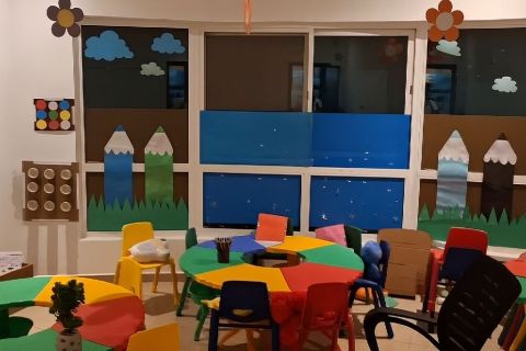 Children'chairs with a table that can be resized. There are 15 available. There are also two plastic tables with their chairs. The items are never used, as they are new
