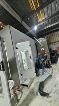 ARCO FORNO - ECO Paint Booth Inside Size (LxWxH) 69004000*2650 mm Outside Size (LxWxH) 70005560*3400 mm Front Door (WxH) 3000*2600 mm Service Door (WxH) 800*2000 mm Total Power 12 kW Price AED299990 Cabin System Wallboard EPS colorful steel skin panel, 50mm thick, 0426 thick colored steel, tongue & groove style, compound construction, anti - flame and heat - insulation Roof panel galvanized