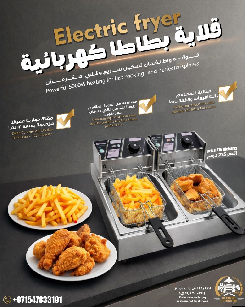 Electric fryer double bowl 2500x2 w capacity 12 ltr