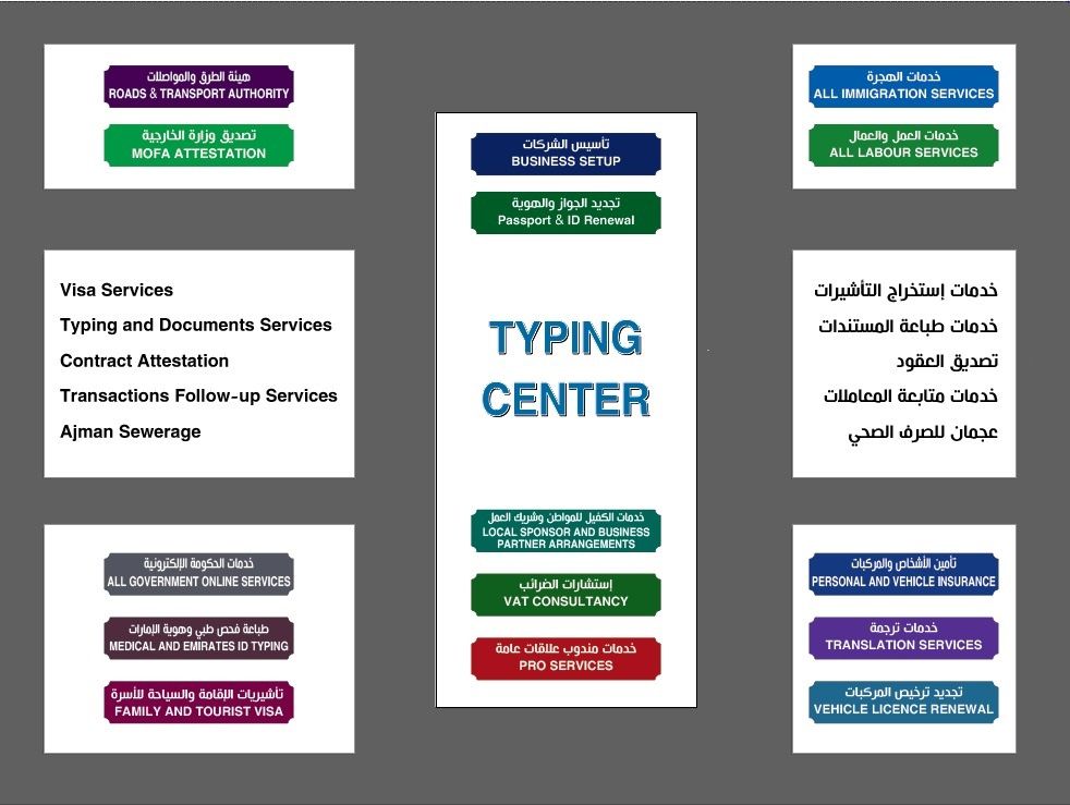 يسرنا نحن مركز برستيج لخدمات رجال الأعمال أن نعمل على ارضاء عملائنا الكرام وتوفير الجهد والوقت بدقة عالية وسرعة انجاز في تقديم خدماتنا التالية خدمات الطباعة وتصوير المستندات (العمل والهجرة وهيئة الطرق والمواصلات والخ) الخدمات الادارية لرجال الأعمال خدمات استخراج التأشيرات (العائلية وخدمات الترجمة خدمات متابعة المعاملات في الدوائر الحكومية خددمات أيجاري دبي تجديد الرخص