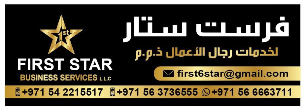 فرست ستار خدمات رجال الأعمال طباعة المعاملات الحكومية تأسيس الشركة في إمارة دبي والشارقة وعجمال طباعة تسهيل وأمر والجوازات الاتحادية فحص طبي هوية مكتبنا في عجمان الروضة واحد بناية المزروعي 2 مكتب رقم 10 خبرة أكثرة من 15 عام في نفس المجال
