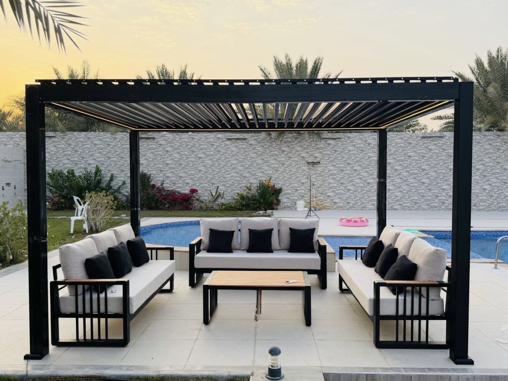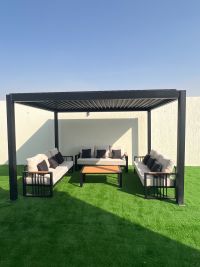 Price AED9799 Premium Aluminum Louvered Pergola Outdoor Lounge full set with seats and cash on delivery. Installation Available across UAE Warranty Optional (1 - 5 years depending on supplier)