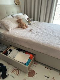 Very high quality bedroom for sale in Dubai Liwan 2, 1 queen bed, 2 side tables with drawers, 1 big comedina with spacious drawers. Used only for 3 months. Very good quality and top brand. Price between 4500 and 5000 for all For serious please call or text