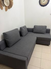 أعرض للبيع كنبة زاوية رمادي مريحة من Ikea، مستخدمة استخدام خفيف ولمدة قصيرة. الكنبة بحالة ممتازة ونظيفة جدا، ومناسبة للجلوس اليومي وتضيف لمسة أنيقة وعملية لغرفة المعيشة. لونها الرمادي سهل التنسيق مع أي ديكور، وتتحول الى سرير بكل سهولة. السعر الأصلي 2700 درهم المطلوب 1000 درهم فقط للجادين فقط