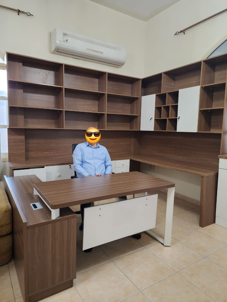 Office SETS for sale Price AED4000 Includes TABLE 1 SIDES LONG TABLE SHELVES CHAIR