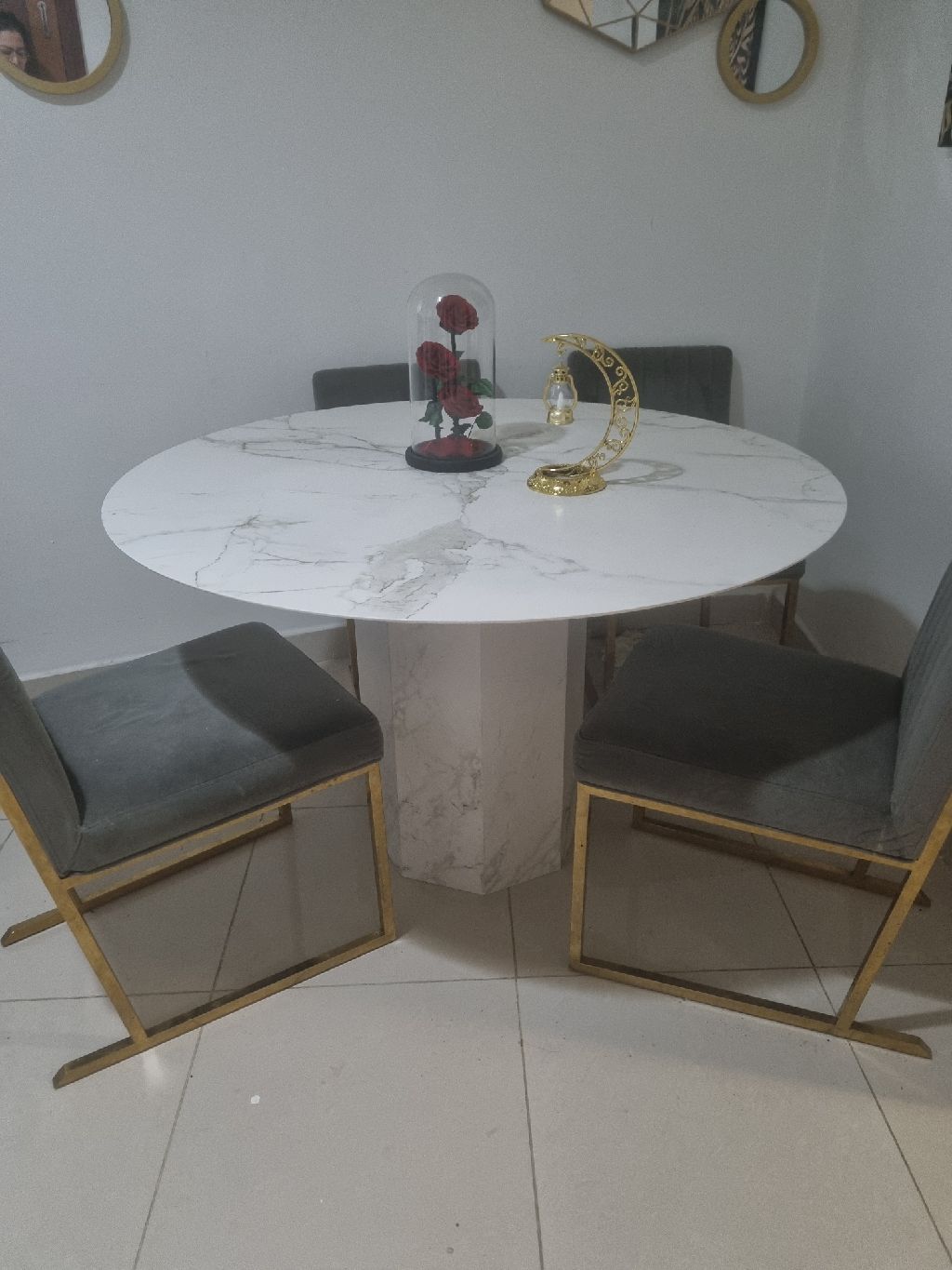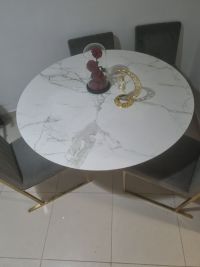 طاولة رخام أصلي أبيض عريضة مع 4 كراسي في حالة جيدة للبيع
