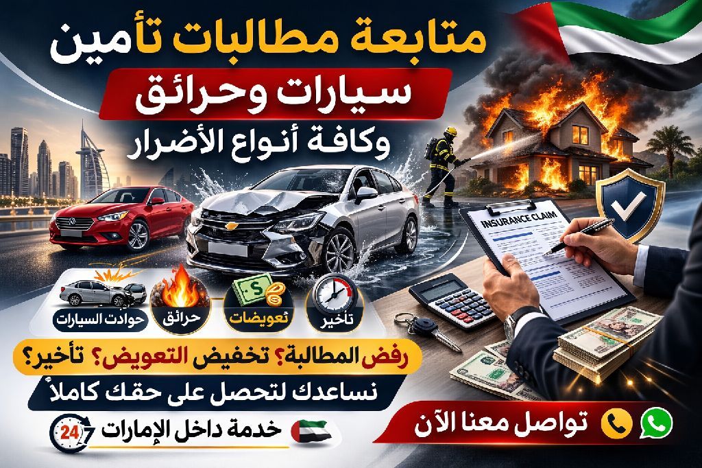 نقدم خدمات استشارية وادارية لمتابعة مطالبات التأمين المتعلقة بالسيارات والحرائق وكافة أنواع الأضرار داخل دولة الامارات العربية المتحدة. نساعد المتضررين في حال رفض المطالبة من شركة التأمين، تخفيض مبلغ التعويض، التأخير، أو تعقيد ملف المطالبة
