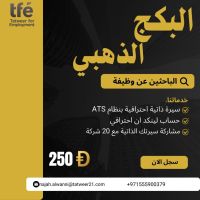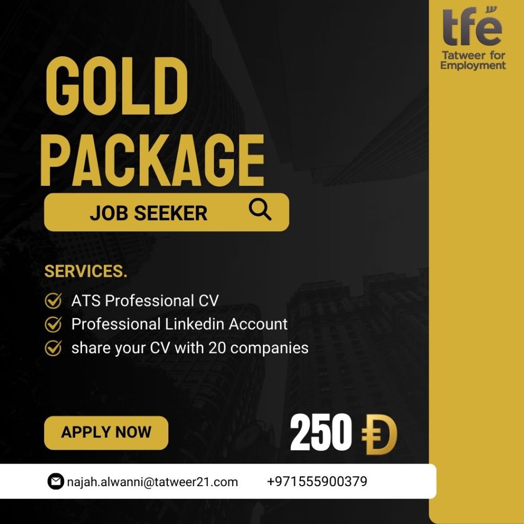 الخدمة اعداد CV احترافي + انشاء حساب LinkedIn + مشاركة سيرتك على 20 شركة الموقع دبي - ديرة نقدم لكم GOLD PACKAGE لخدمات الباحثين عن عمل والذي يشمل انشاء CV احترافي متوافق مع أنظمة ATS اعداد حساب LinkedIn بشكل احترافي مع تحسين الظهور للوظائف مشاركة سيرتك الذاتية مع 20 شركة داخل الامارات متابعة وتعديلات مجانية انجاز سريع خلال أقل من 24 ساعة السعر 250 درهم فقط للتواصل
