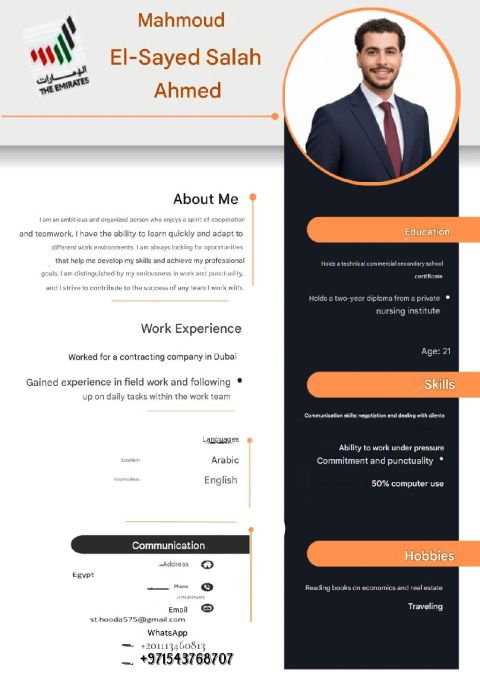 محمد عبد المطلب مهندس مدني سوداني خبرة 6 سنوات في مجال المقاولات وإدارة المشاريع بما في ذلك حساب الكميات والاشراف ومتابعة الأنشطة في المواقع من الخرسانات والى التسليم النهائي والتنسيق ما بين مقاولين الباطن والاستشاريين والملاك حاصل على تصنيف بلدية دبي G1 وبطاقة قيد المهندسين في أبوظبي والشهادة الأمريكية لادارة المشاريع الاحترافية من المعهد الأمريكي لإدارة المشاريع (PMP) ورخصة قيادة سارية للتواصل