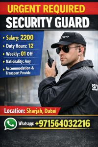 We are currently hiring security guards for Dubai, Bur Dubai, Sharjah, abu Dubai Location, If anyone is interested, apply immediate joining preferred
