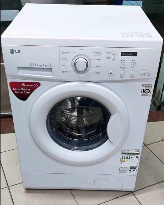 غسالة ألجي 7 كجيم ذات محرك مباشر وباب أمامي أوتوماتيكية بالكامل بحالة ممتازة، بالاضافة الى ضمان استبدال لمدة شهر وخدمة توصيل مجانية الى المنزل