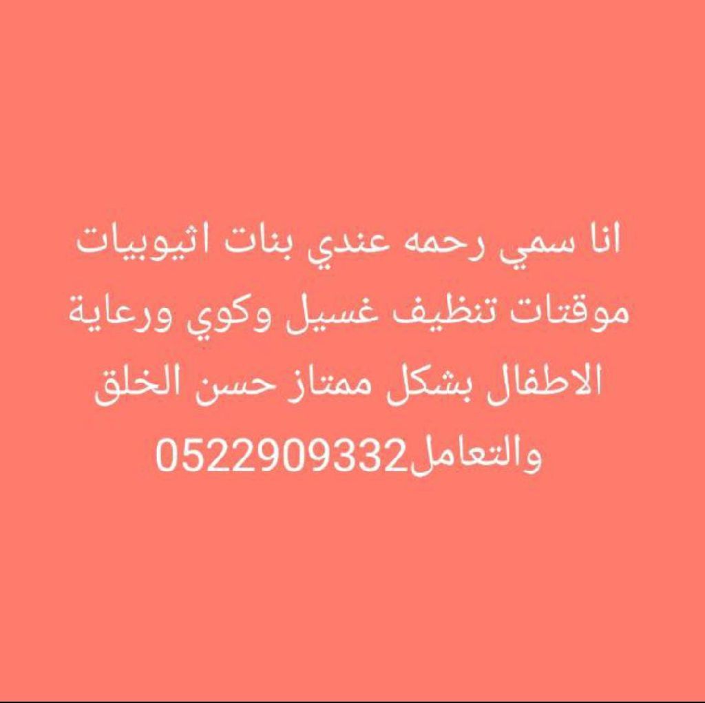 أنا سمي رحمة عندي بنات أثيوبيات مؤقتات تنظيف غسيل وكوي ورعاية الاطفال بشكل ممتاز حسن الخلق والتعامل