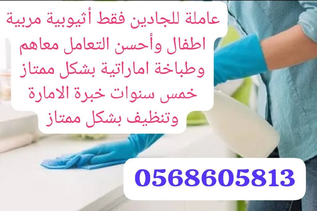 عاملة اثيوبية مربية اطفال وأحسن التعامل معاهم وطباخة، اماراتية بشكل ممتاز خمس سنوات خبرة وتنظيف بشكل ممتاز للجادين فقط