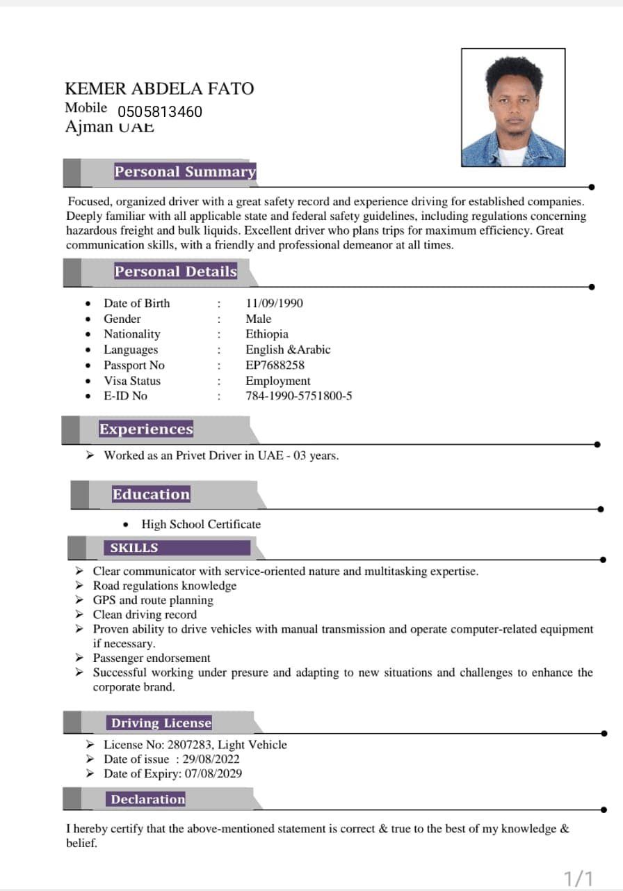 لدي خبرة ست سنوات في التنظيف والطبخ ورعاية الاطفال، وأجيد جميع الأعمال المنزلية تقريبا. أستطيع العمل يوميا أو أسبوعيا أو شهريا في أي مكان في الامارات العربية المتحدة. لدي تأشيرة إقامة. أنا صادقة ومجتهدة، وسأقدم خدمة ممتازة. سائقة منظمة وملتزمة، ولدي سجل قيادة ممتاز وخبرة في العمل لدى شركات معتمدة