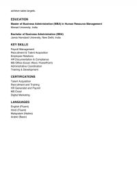 محترف في الموارد البشرية والإدارة يتمتع بخبرة تزيد عن 6 سنوات في عمليات الموارد البشرية، وإدارة الرواتب، والتوظيف، وإدارة المكاتب. ماهر في علاقات الموظفين، والتوثيق، وتنفيذ السياسات، مع قدرة مثبتة على تبسيط اجراءات الموارد البشرية وضمان الامتثال ودعم نمو المؤسسة من خلال إدارة فعالة للأفراد