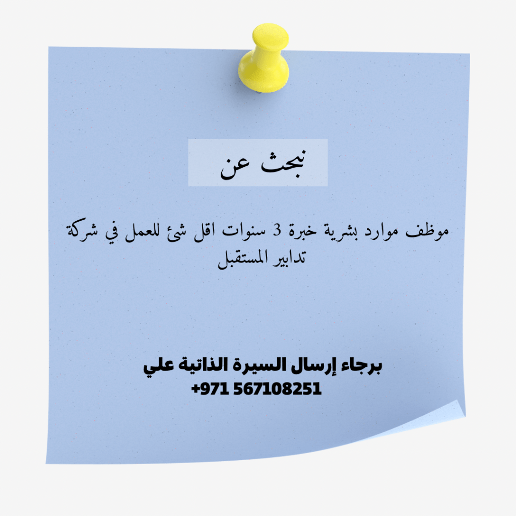 نبحث عن موظف / موظفة موارد بشرية محترف / ة للانضمام الى فريقنا، يتمتع / تتمتع بالشغف، القدرة على التنظيم، ومهارات التواصل العالية. ستكون / ين جزءا من بيئة عمل ديناميكية تقدر التطوير، الجودة، والالتزام يرجى إرسال السيرة الذاتية علي رقم التواصل