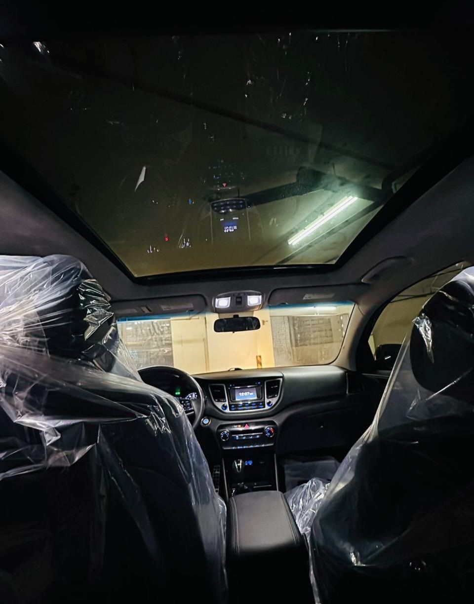 For sale: Hyundai Tucson 1.6T 2017 full options, number one. Full agency maintenance. Features include smart keyless entry with fingerprint start, mirrors with turn signals and puddle lights, panoramic sunroof, electric seats with cooling and heating, screen with rear camera, radar and full steering control, electric tailgate opening and closing, 19-inch sport rims, rear air conditioning, and driving mode selection (sport, comfort).