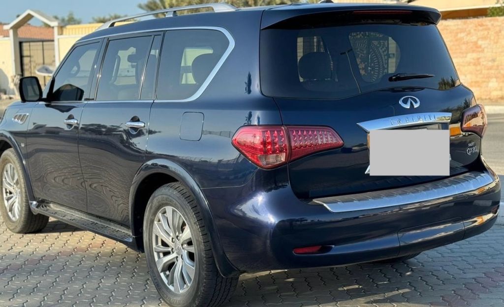 Infiniti QX80 2015, top of the range, 180,000 mileage, fresh USA import. Features include: 360 camera, adaptive cruise control, alloy wheels, front and back radar, original airbags, sunroof, electric tail gate. Engine and chassis are 100%. Price: AED 40,000.
