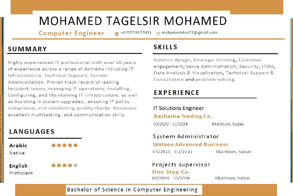 I am a Network and IT Engineer with over 10 years of experience, possessing strong skills in Network design and management. Information security. Systems admin and technical support. Proficiency with Windows Server. Experience with IP Phones and CCTV systems. PC maintenance and troubleshooting. Attendance systems management. Currently based in the UAE, I am eager to discuss any job opportunity