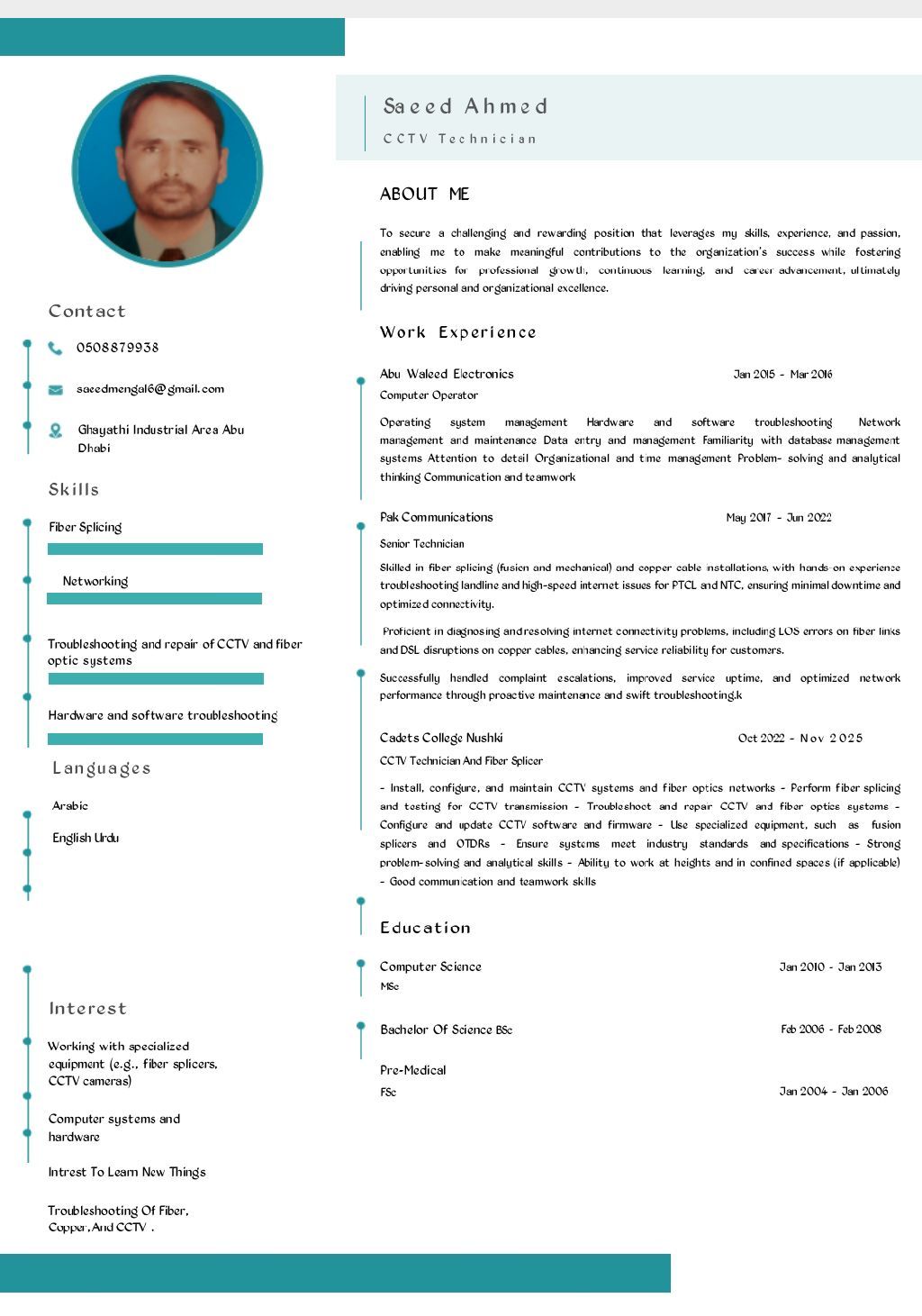 I am currently in abu Dubai free lance visa. I am lookinng for Job like telecommunications. I have CCTV technician, Cate 6 cable termination, patch pannel termination, Fiber splicing, Copper cable jointing
