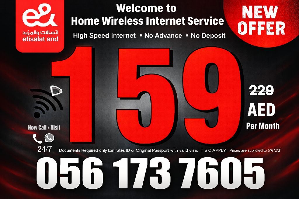 Etisalat home Internet service For more details call & WhatsApp FREE and fastest installation No advance payment, No Deposit