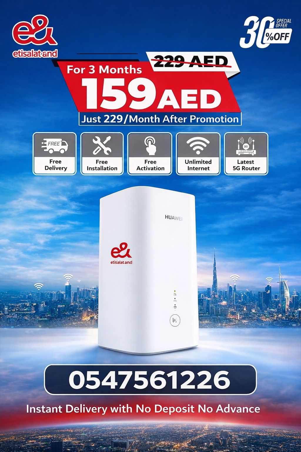 159 AED Etisalat New Offer Speed 100 Mbps Installation Free for more Details Etisalat Home WiFi Connection Call