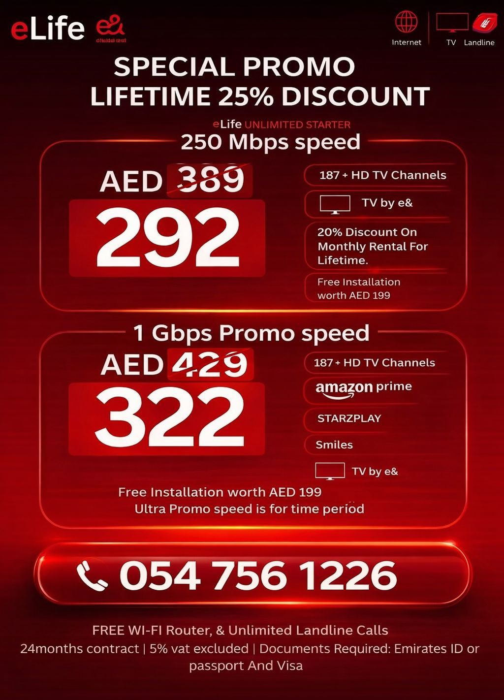 159 AED Etisalat New Offer Speed 100 Mbps Installation Free For more Details Etisalat Home WiFi Connection Call