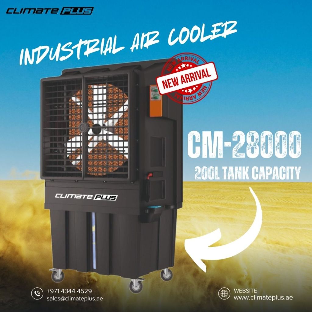 Stay cool this summer with the Climate Plus 200L Industrial Air Cooler, engineered for high performance cooling in hot and humid environments. Ideal for warehouses, workshops, factories, and outdoor areas, this air cooler delivers powerful airflow and efficient evaporative cooling. Model CM - 28000 Airflow 28000m/ HR covers large spaces effortlessly Water Tank Capacity 200 Liters Motor Single