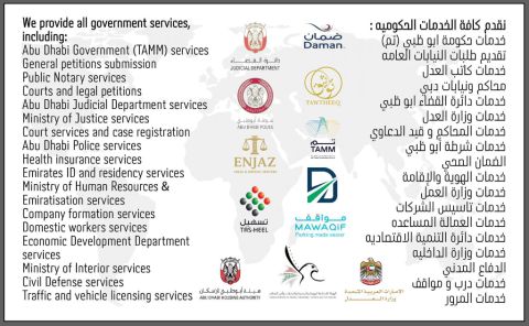 خدمات تأسيس جميع أنواع الشركات بدولة الامارات الاستشارات القانونية والادارية للأعمال كتابة المذكرات وتقديم الطلبات والخدمات القانونية متابعة وتخليص جميع المعاملات الحكومية والخاصة جميع المعاملات التنمية الاقتصادية اصدار وتجديد كافة أنواع الرخص جميع معاملات الهيئة الاتحادية للهوية اصدار وتجديد الاقامات للشركات والعمالة المساعدة جميع معاملات وزارة العمل اصدار وتجديد تصاريح العمل للموظفين والمواطنين ودول