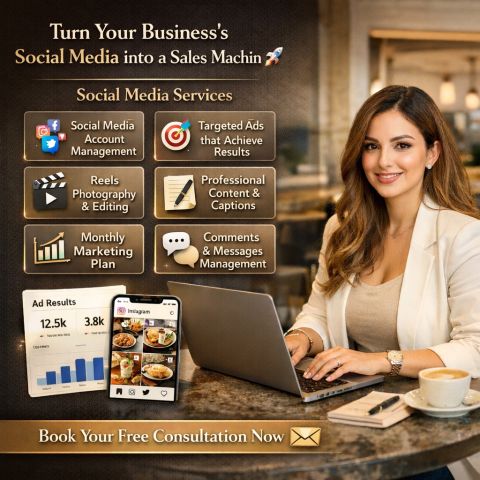 عايز تكبر مشروعك وتزيد مبيعاتك من السوشيال ميديا أنا أخصائية social media & Digital Marketing بخبرة عملية داخل دبي، بقدم خدمات متكاملة تساعد البراند تبعك يظهر بشكل احترافي ويجيب عملاء حقيقيين خبرة بمجال المطاعم والأنشطة التجارية أسعار مرنة حسب احتياجك