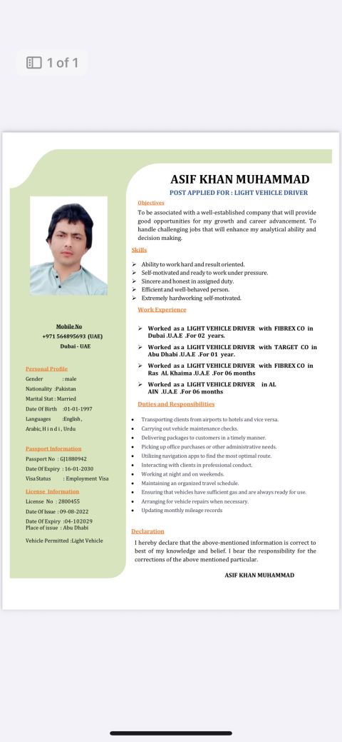 I am looking for driving job I have experience 15 years in UAE I have company and family experience