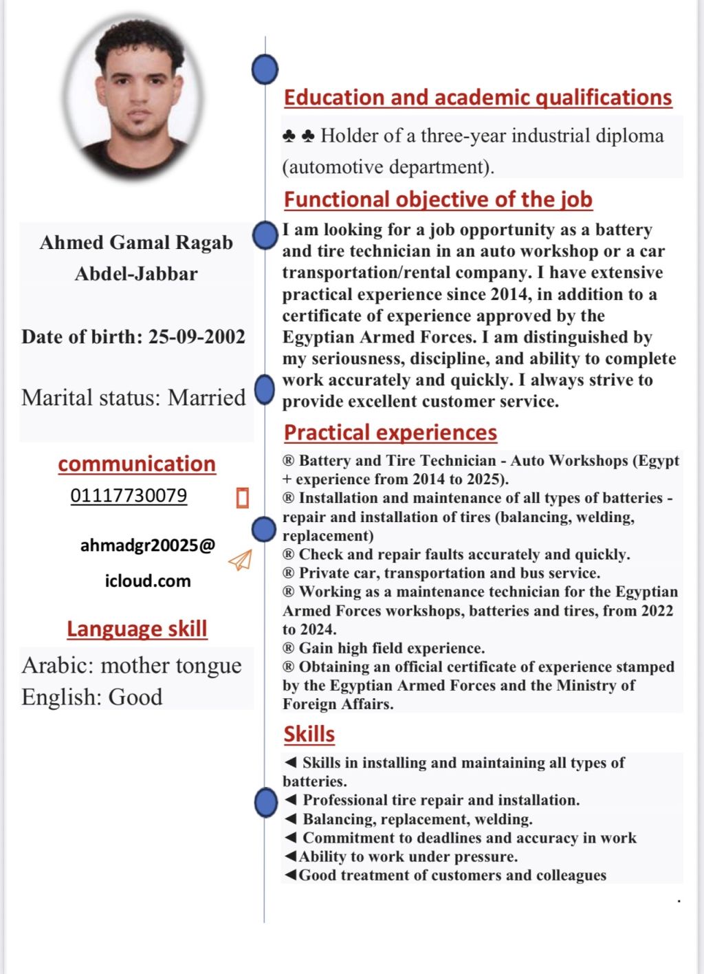 I am currently residing in the UAE and have a loanable residence for two years (valid) I am looking for a job opportunity in any field. I work in the field of coach and batteries and I have experience since 2012, and I have certificates of experience in the field. Look for a suitable job opportunity in the same field within the UAE, and are ready to start working immediately. To communicate