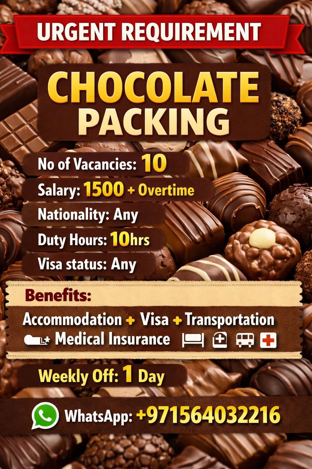 We are currently hiring food packing and production line workers for Dubai Al Quoz locations. Salary package 1600 - 2000, company will provide you transportation, accommodation, visa and food allowance
