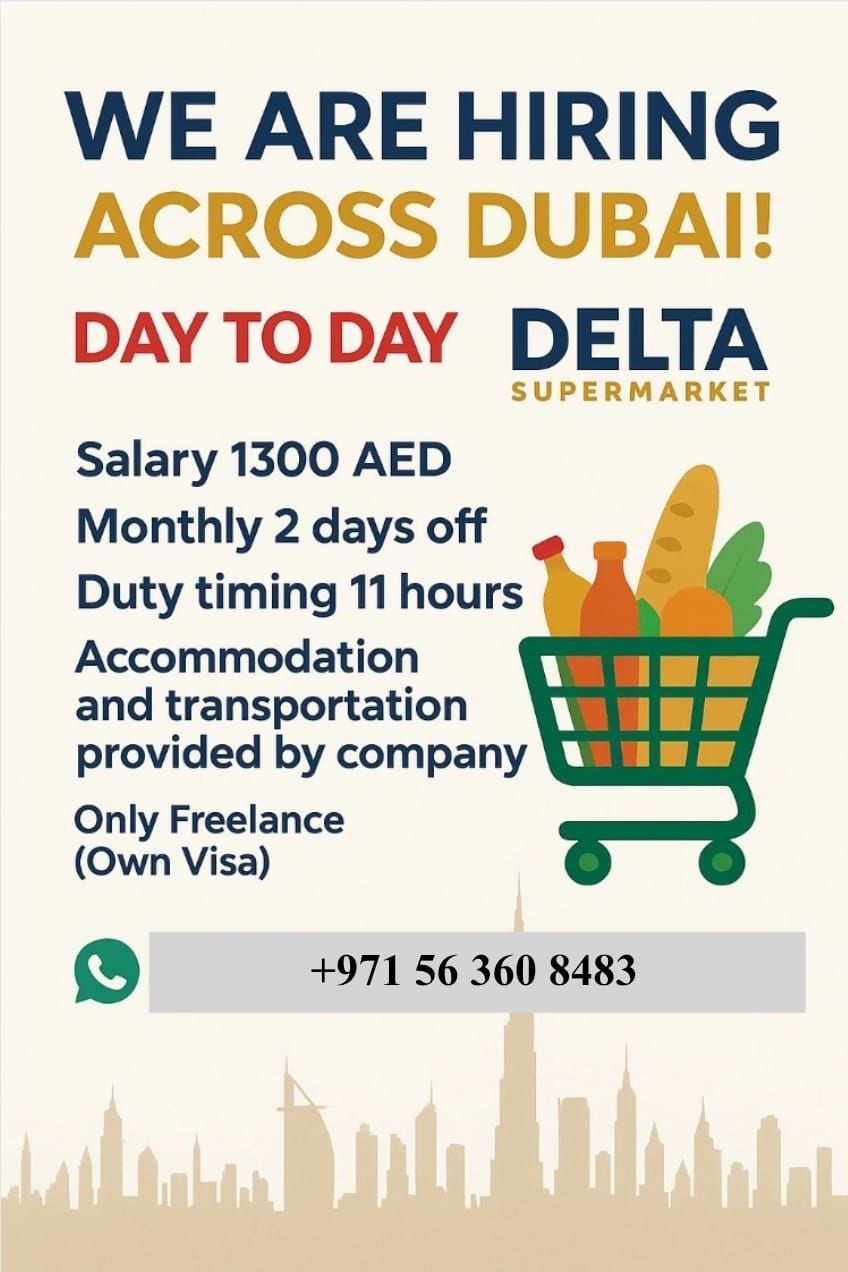 We are looking for supermarket helper staff in Dubai accommodation is in all UAE available U A E Dubai, Al Rigga Dubai